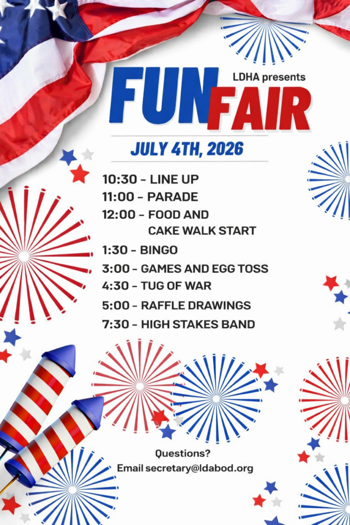 2026 LDHA Fun Fair Post author:ldhasecretary Post published:April 11, 2026 Post category:Emails Sent to Membership You Might Also Like LDHA BOD 2026 April April 15, 2026 Volunteers Day! April 11, 2026 2026 Free Youth Fishing Derby March 25, 2026